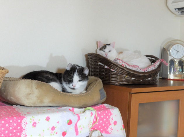 ストーブ付けるならエアコンは切りたい所だけど、猫らのベットがエアコン吹き出し口近くにあって、温風が出ないとすごくガッカリされる。