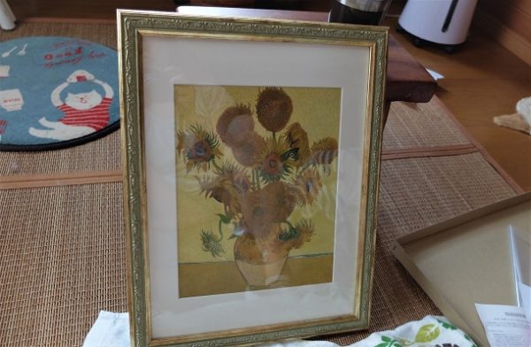 のりのりさんこんにちは。ゴッホのひまわりを毎日眺めて癒されてます。(´・∀・`)ゴッホ展で売ってた額はシンプルな木の額で合わないなーと思ったので止めたんですよね。