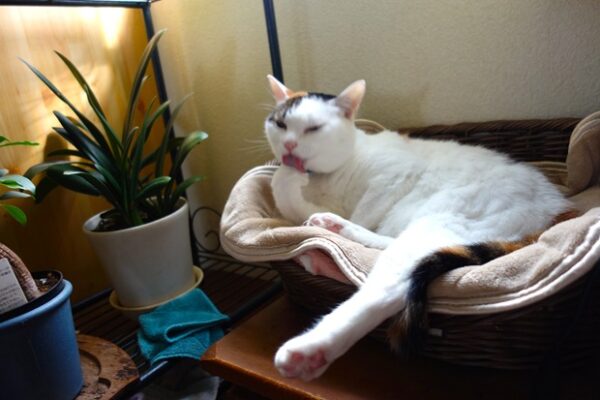 あーどうしようかと頭を抱える飼い主のそばで、毛づくろいをするユズちゃん。