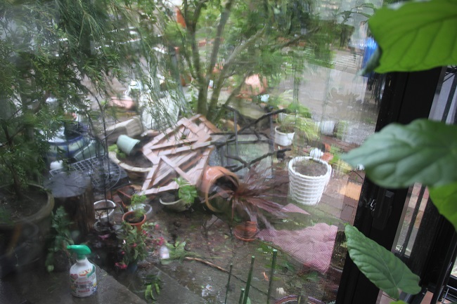 弱ってたらしき樹木がなぎ倒されてたり、折れた木の枝や、ちょっと重みのあるテーブルまで飛ばされてたんですよ。