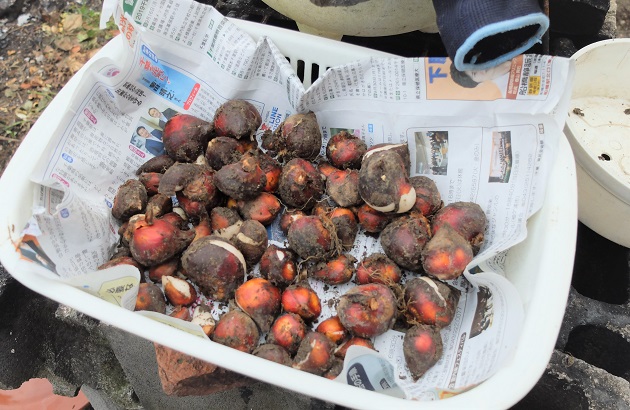 先週末の梅雨の晴れ間にチューリップの球根を掘り上げました。