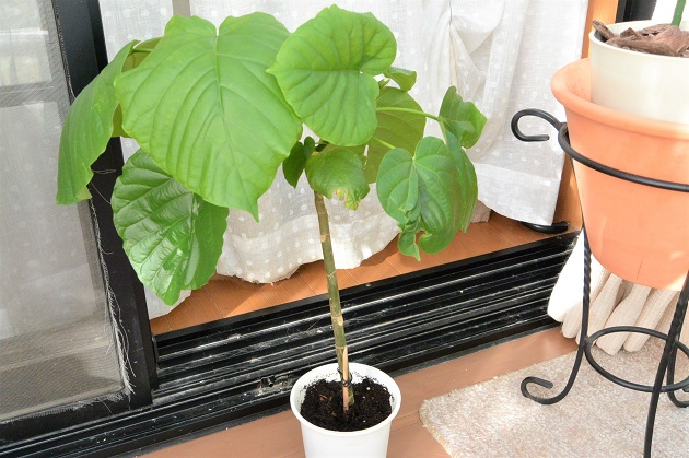 背の高い観葉植物は買うと結構高く、ウンベラータで150cmもあると7,8千円ぐらいする。とてもその値段では買えません。。。