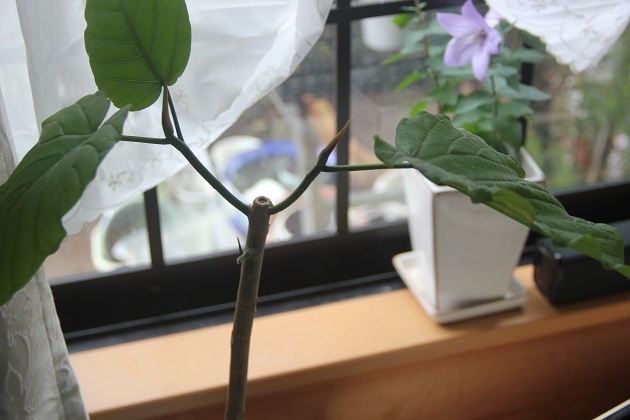 そしてこれは切った部分の枝。水差しで発根させてから土に植えました。
