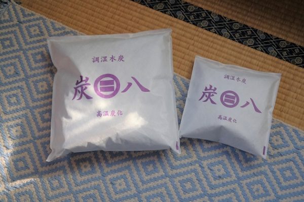 出雲の炭八といって中身はさらさらして軽い。備長炭の2倍調湿力があるんだと。