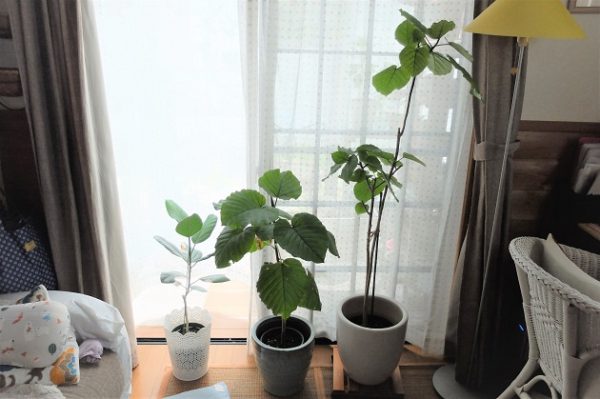 真ん中のはフィカスアルテシーマで、今年春からメキメキ伸びて15cmくらい伸びたかな。
