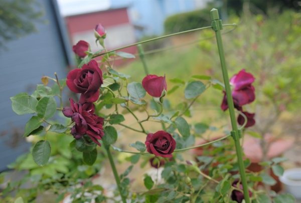 この赤もツルバラですが、名前忘れました。。。 でも強健なバラで花もち良し。