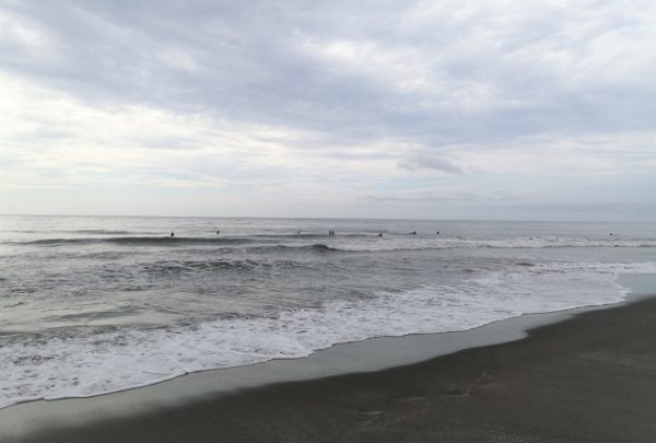 連休最終日朝8時過ぎ、曇天ですが結構サーファーは来ていました。