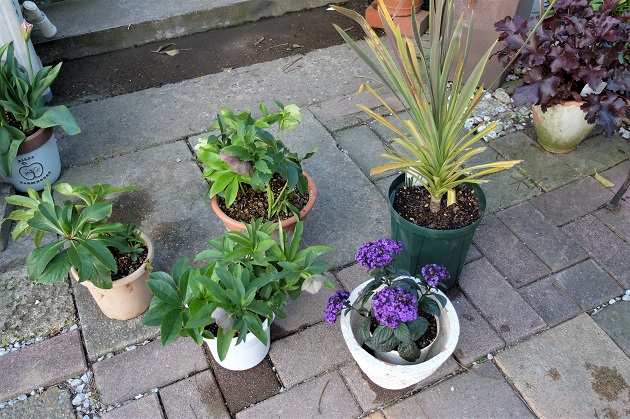 クリスマスローズとヘリオトロープとコルジリネの植替え終了。