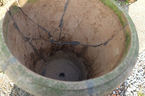 先日の強風で再度割れてしまった大鉢はボンドで付けてみたけどさすがに無理そう。
