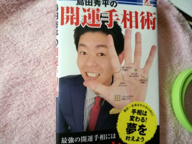 先日コンビニで500円位の手相の本を買いました。著者は島田秀平さんで手帳サイズの小さな本です。手相の本って前にも読んだ事があるけど文字ばかりで読みにくいものが多い。でもこれはイラストもいっぱいあり読みやすかったです。