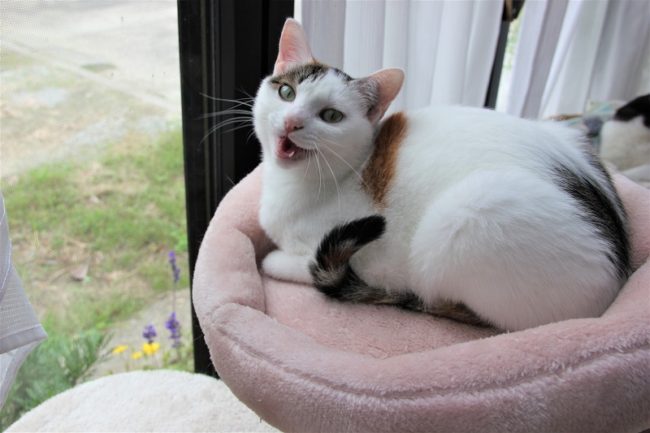 しょっちゅうムニャムニャ云ってて、「ユーズちゃん?」と呼ぶと「ニャアー」と必ずお返事もします。