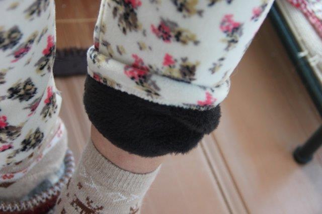体が冷えてると万病のもとになりかねません、このように裏が毛布のようにボアになっているので温かいのです。