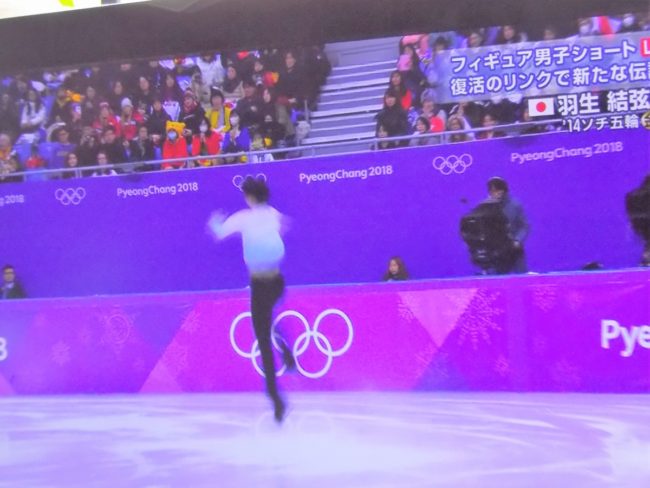 客席には日本の旗が凄い数です。やっぱり羽生結弦ファンが相当来ている様子、チラとテレビに映ったのはやっぱりオバサマばかりでした。