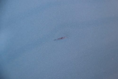 ところが、洗車してキレイになった車体を眺めたら、なんと後ろの右ドアに凹み傷が。こすって付けた傷じゃなくて、横一線に3センチくらいの凹み傷です。