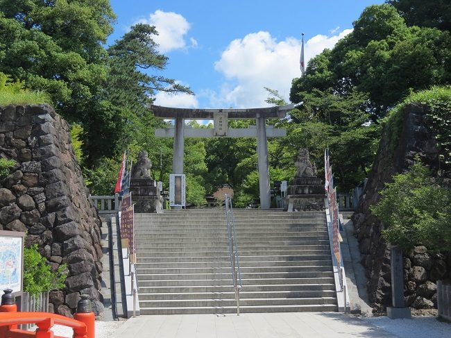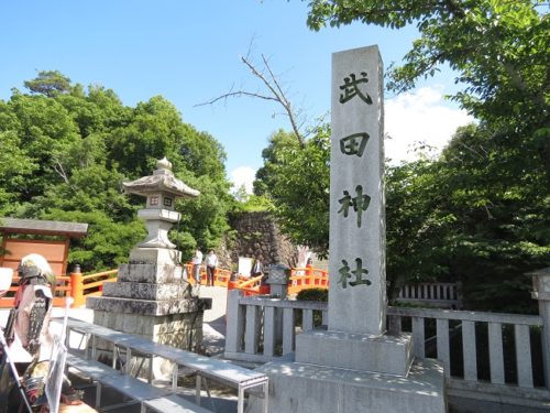 さて翌日は晴天で笛吹市の石和温泉から8キロくらいの甲府の武田神社へ。「風林火山」の旗で有名な武田信玄が御祭神の神社です。