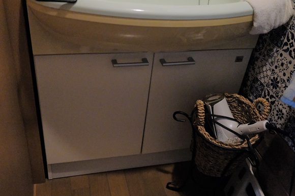 洗面台の材料はカラーボックスのような安物でした。