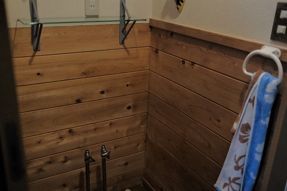 今の壁紙に飽きたので、普通の腰壁に戻すことにします。
