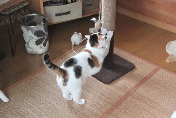 最後になりますが、ユズちゃんの爪とぎ伸び伸びポーズは可愛いですね。おしりがキュートです。少し痩せたかな??