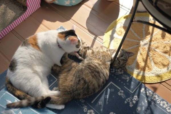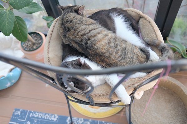 最近昼間になるとサンルームがポカポカで暖かいので猫らが入り浸り。