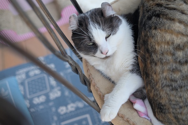 特にナナちゃんは一日ずっと過ごしていますね。夕方ここで寝てるナナを飼い主が抱きかかえて部屋に入れる体たらくです。