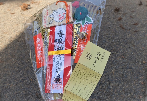 香取神宮の熊手は値段の割に大きくて飾りもまぁまぁ可愛いの。