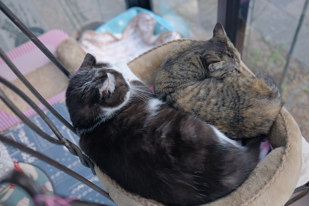 ナナちゃんが割り込んできて迷惑そうなノンちゃん。