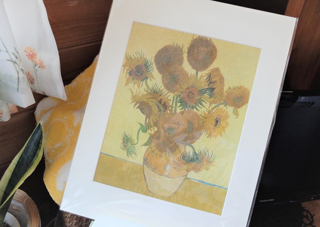 ゴッホは全部で7枚のひまわりを描いてます。背景の色を変えたり、色のトーンを変えてみたり実験して複数枚描いたという。
