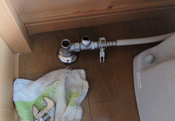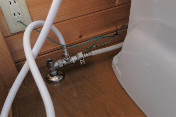 左のホースはトイレタンク給水ホース、これは変える必要無いのでそのまま使います。