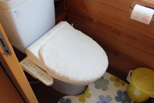 前のより大きくなったので、トイレカバーはフタの淵に引っかけて、ぎりぎりまで引っ張りました。
