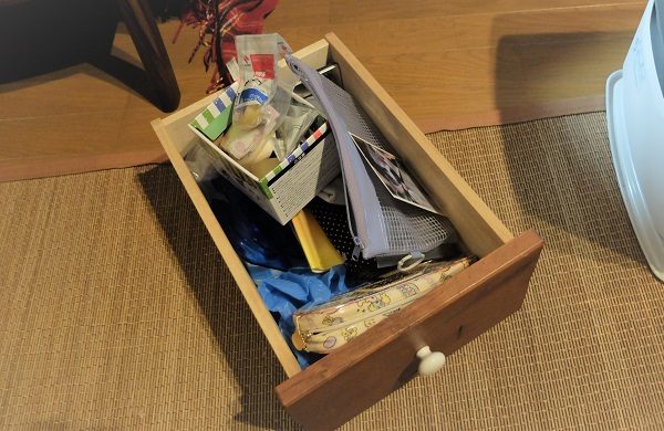 文房具が残りました。これをどこかに仕舞うため、またどこかを片付けます。