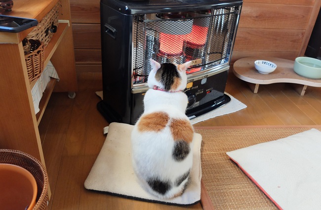 ストーブが付いてると離れません