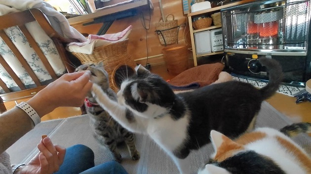 猫らのおやつ争奪戦